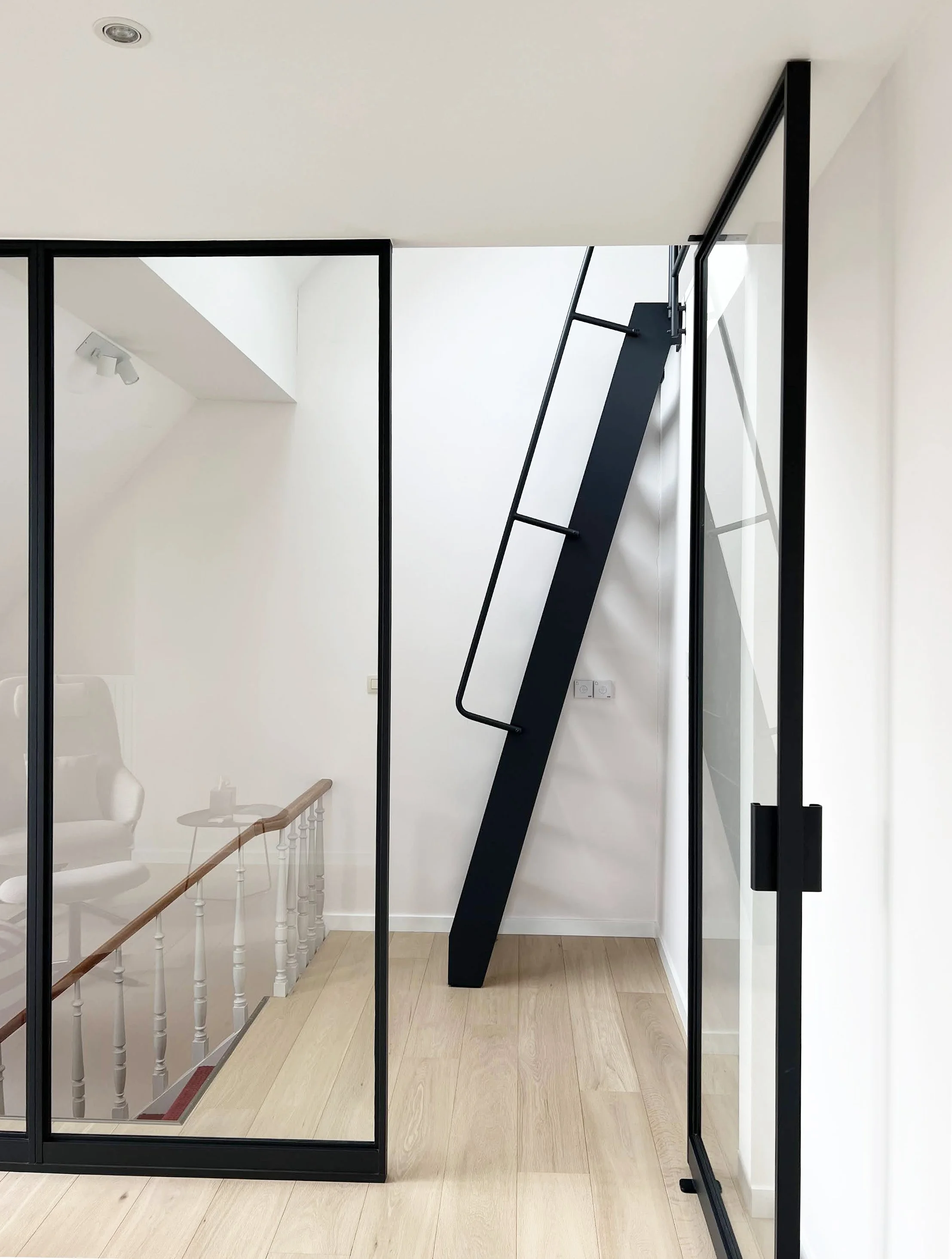 Le projet consiste à transfromer entièrement les combles de l’habitation afin d’accueillir un espace bureau, une chambre et une salle de douche. La lucarne arrière s’ouvre largement vers le jardin pour profiter de la vue et créer un espace de détente extérieure.