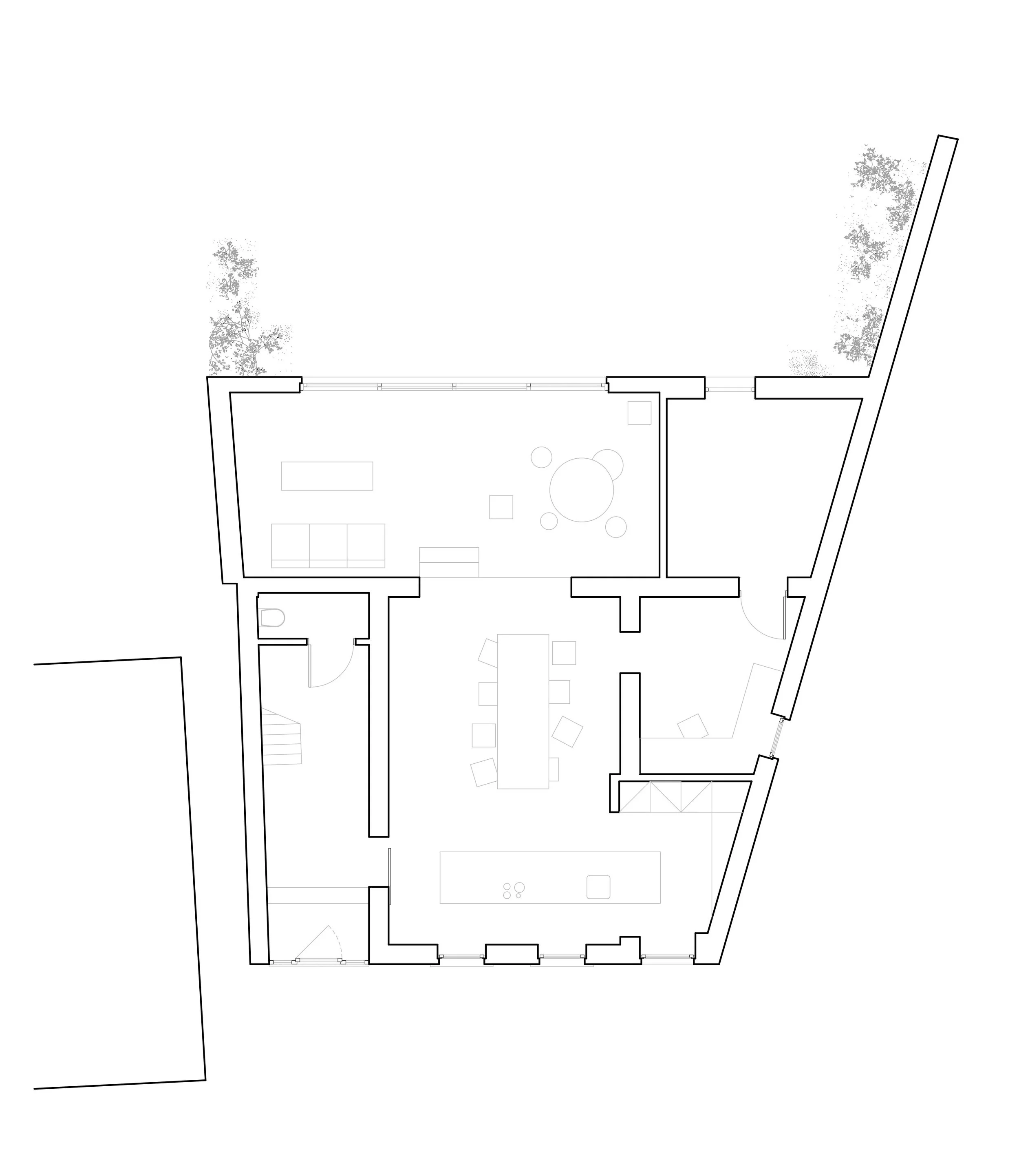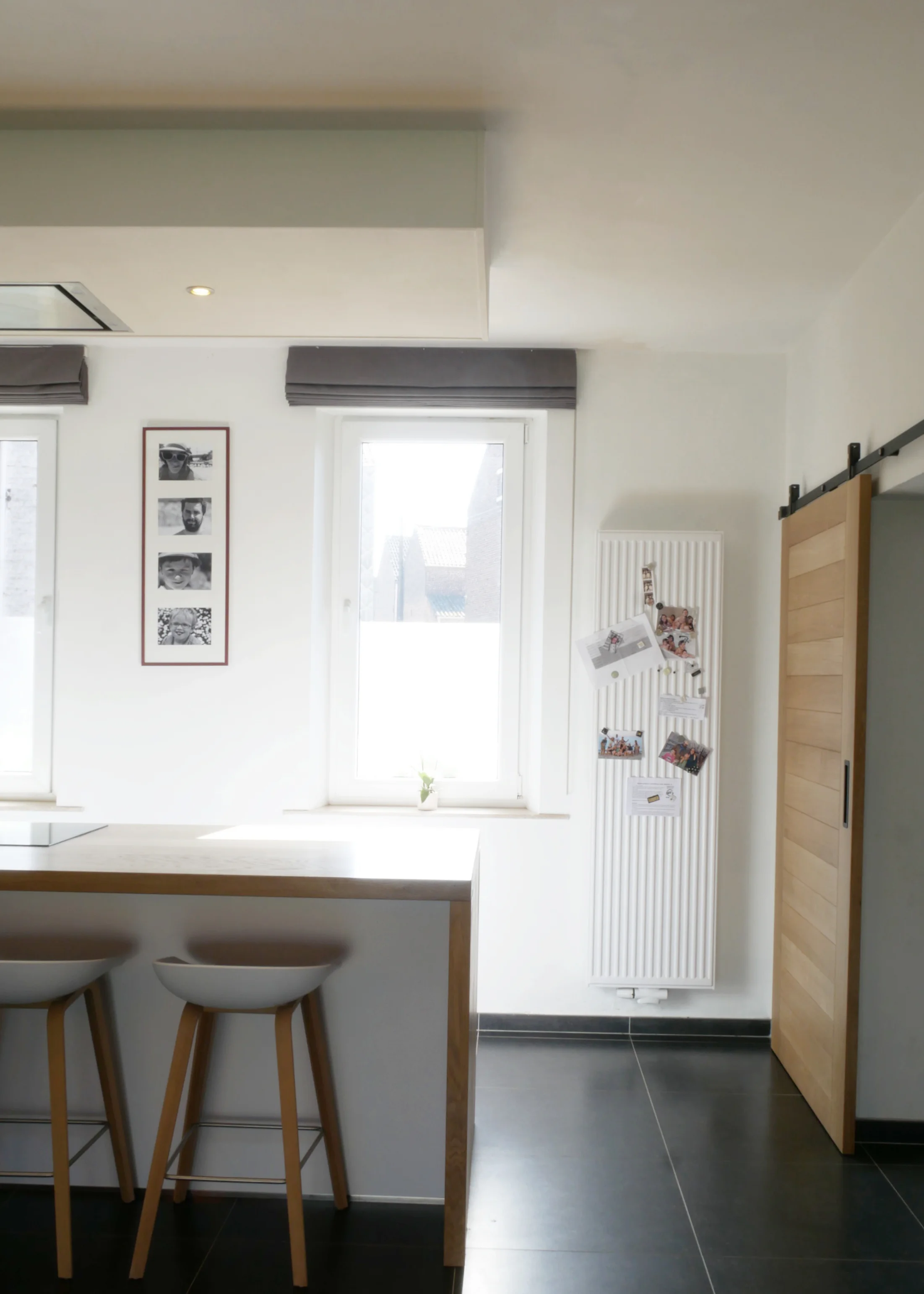 Extension & transformation d'une maison unifamiliale à Sart-Melin dans le Brabant-Wallon. L’ensemble des anciennes annexes qui ont couvert au fil du temps le terrain, ont été démolies pour faire place à un nouveau volume s’ouvrant largement sur le jardin. La cuisine a été complètement décloisonnée et repenser comme l’espace centrale profitant dorénavant de vue vers le jardin.