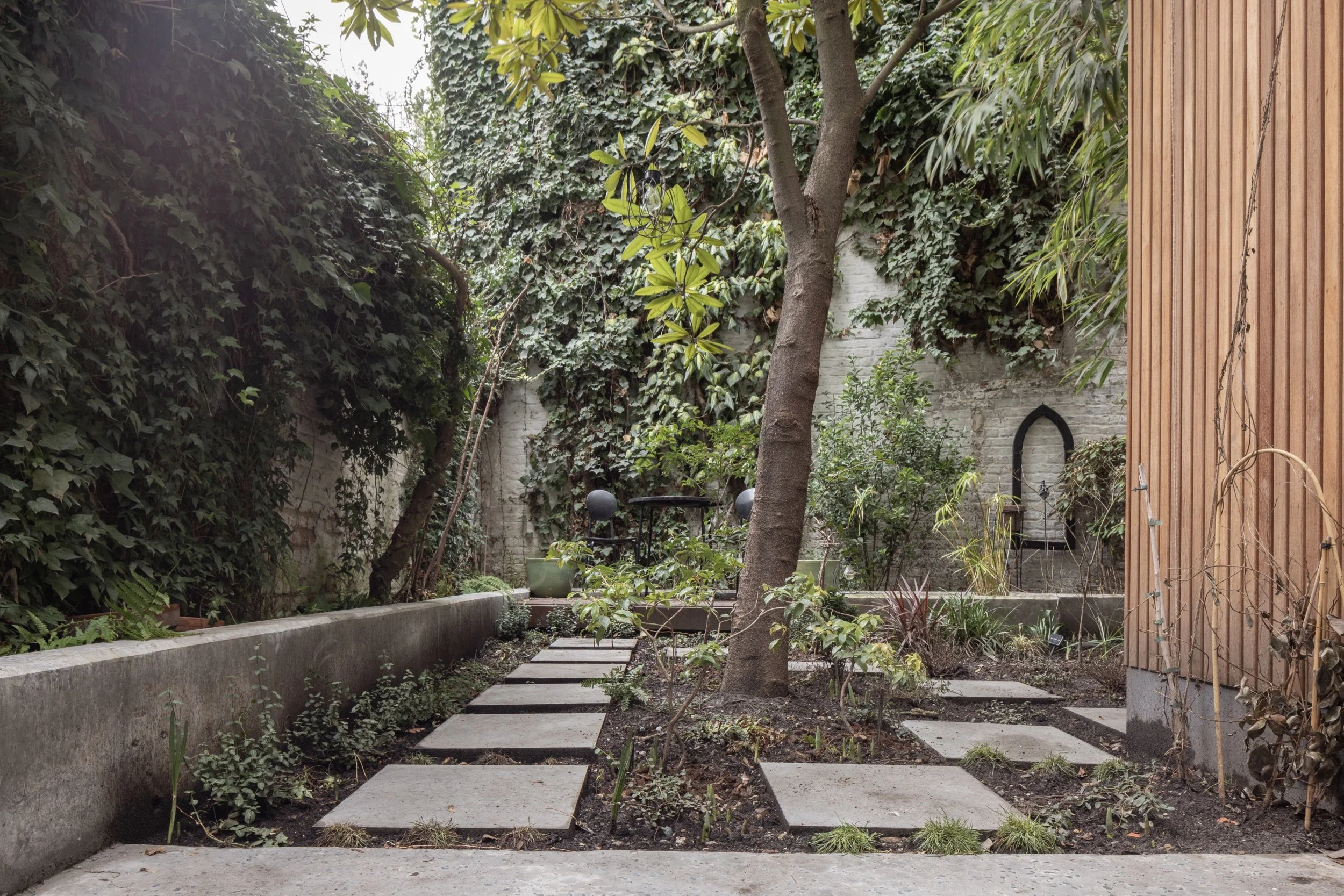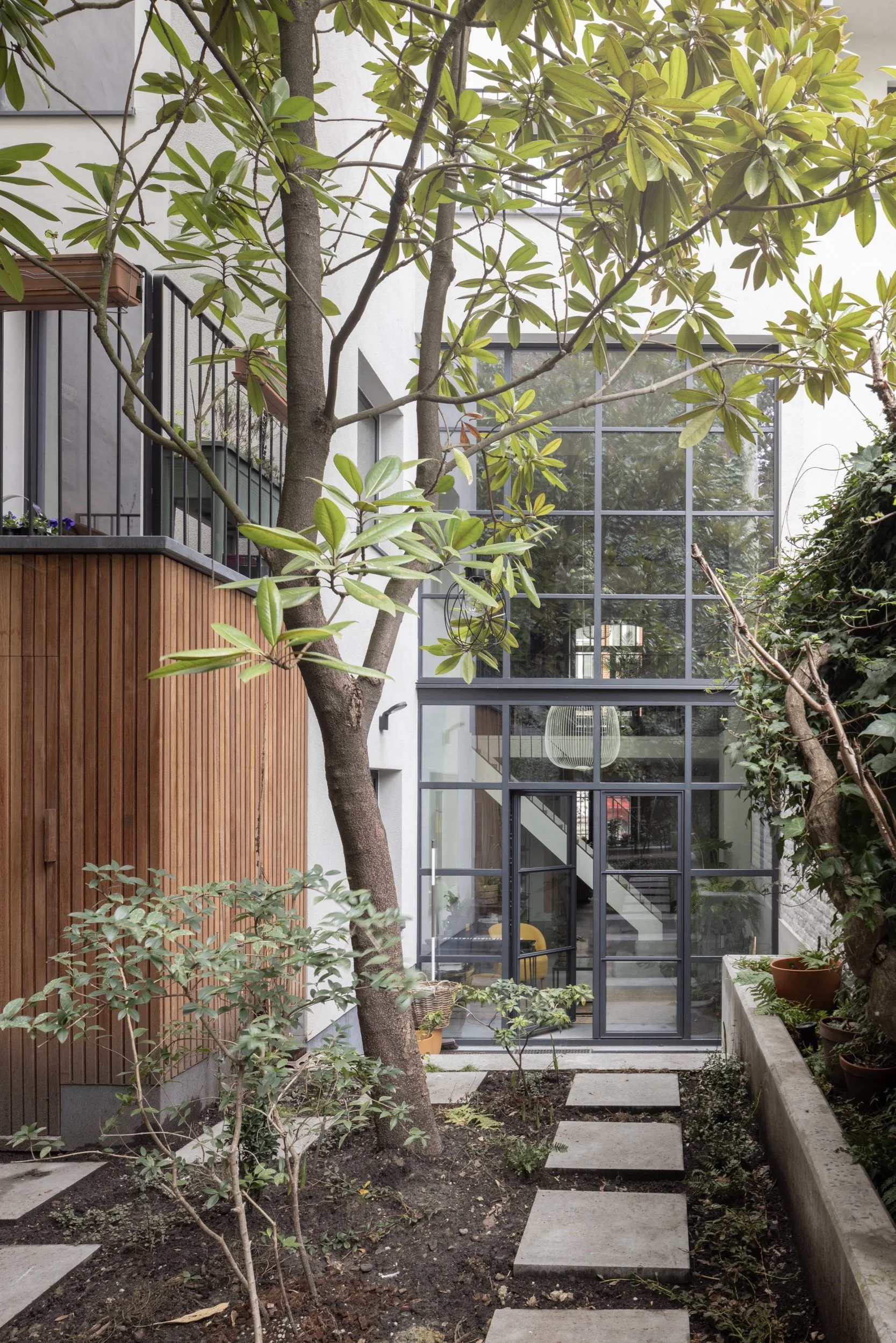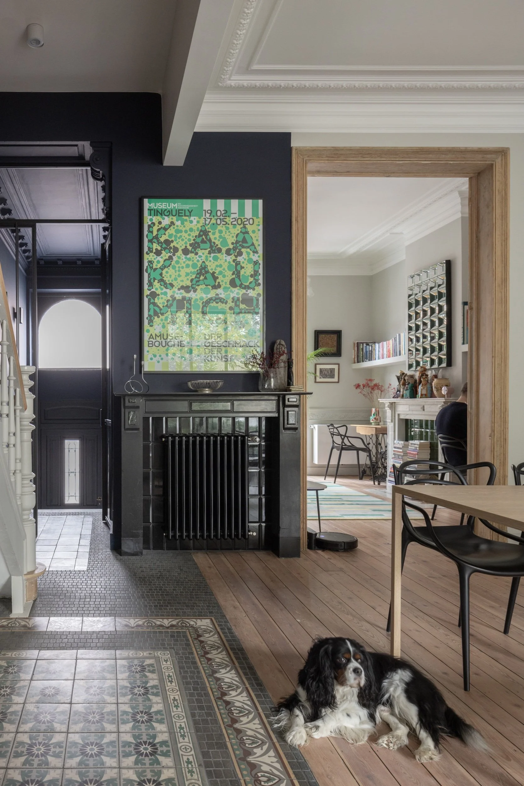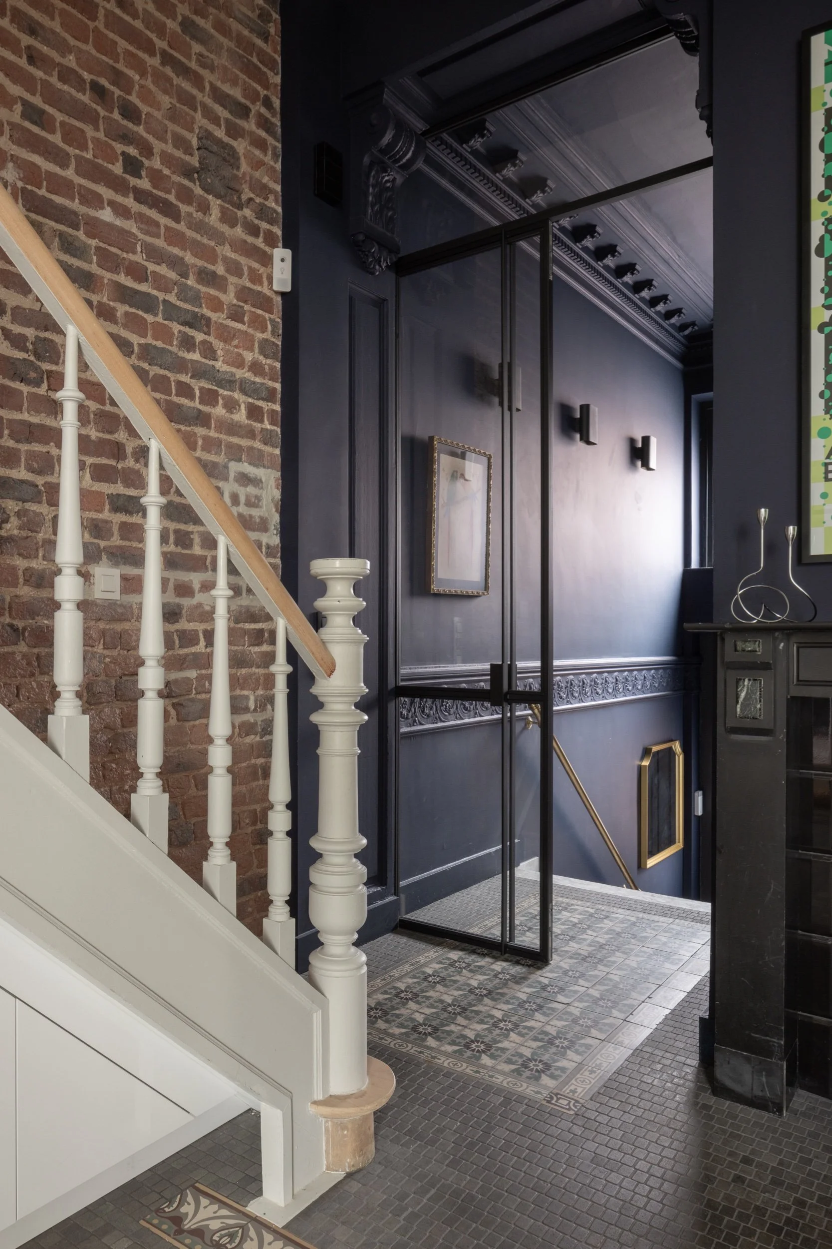 Une attention particulière est également apportée à la mise en avant d’éléments existants en limitant les démolitions ou re-utilisant IN SITU les matériaux (carrelage, manteaux de cheminée, menuiserie, parquet, etc.)